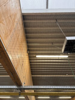 Pour garantir une protection totale contre les pigeons, nous avons installé des filets verticaux et horizontaux couvrant l’intégralité de l’entrepôt, empêchant ainsi toute nouvelle intrusion.